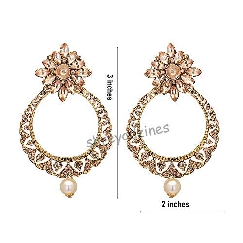 7 reviews for Shreyadzines CZ Stones Faux Pearl Wedding chandbali Earrings maang tika Set for Women and Girls (Gold) – Fast Shipping to USA & Canada