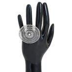 - This stunning oxidized silver Afghani-style cocktail ring features a beautifully intricate design, perfect for parties or special occasions. The ring is adjustable, ensuring a comfortable fit for different finger sizes. Please note, close-up photos are provided to highlight the details, so the ring may appear larger in the images-be sure to check the listed dimensions for the actual size.