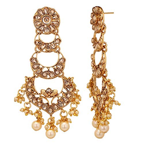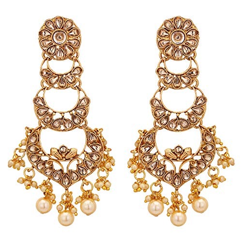 Shreyadzines Designer Festive Collection Non-Precious Metal Alloy Gold Polish Faux Pearl CZ Jhumka Jhumki Dangle Earrings for Women, Free size (JME2197) – Fast Shipping to USA & Canada