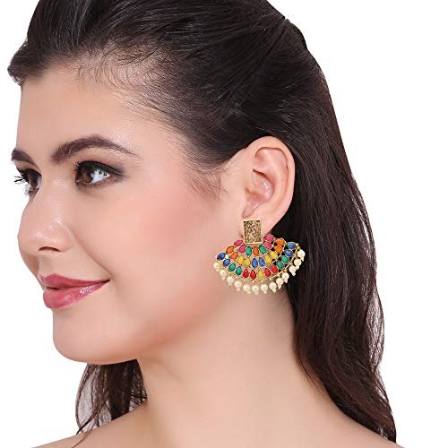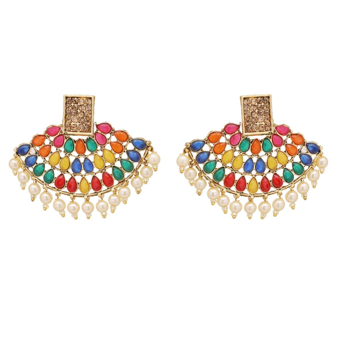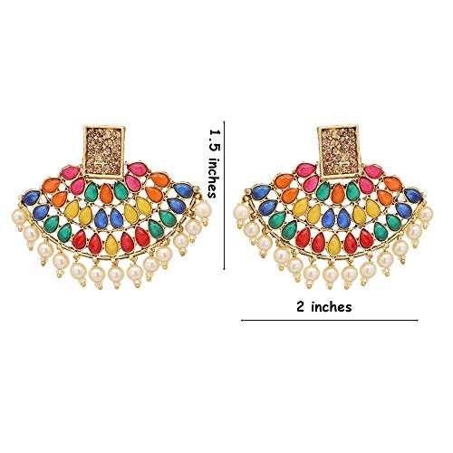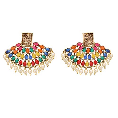 Shreyadzines Designer Party Wedding Eid Floral Design Multicolor Stone CZ Small Cute Earrings for Women and Girls – Fast Shipping to USA & Canada