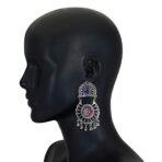 Elevate your style with our designer oxidized silver bead and stone earrings, featuring a stunning traditional oxidized finish. Pair these unique fusion earrings with a vibrant dress to add an extra touch of elegance to your look.