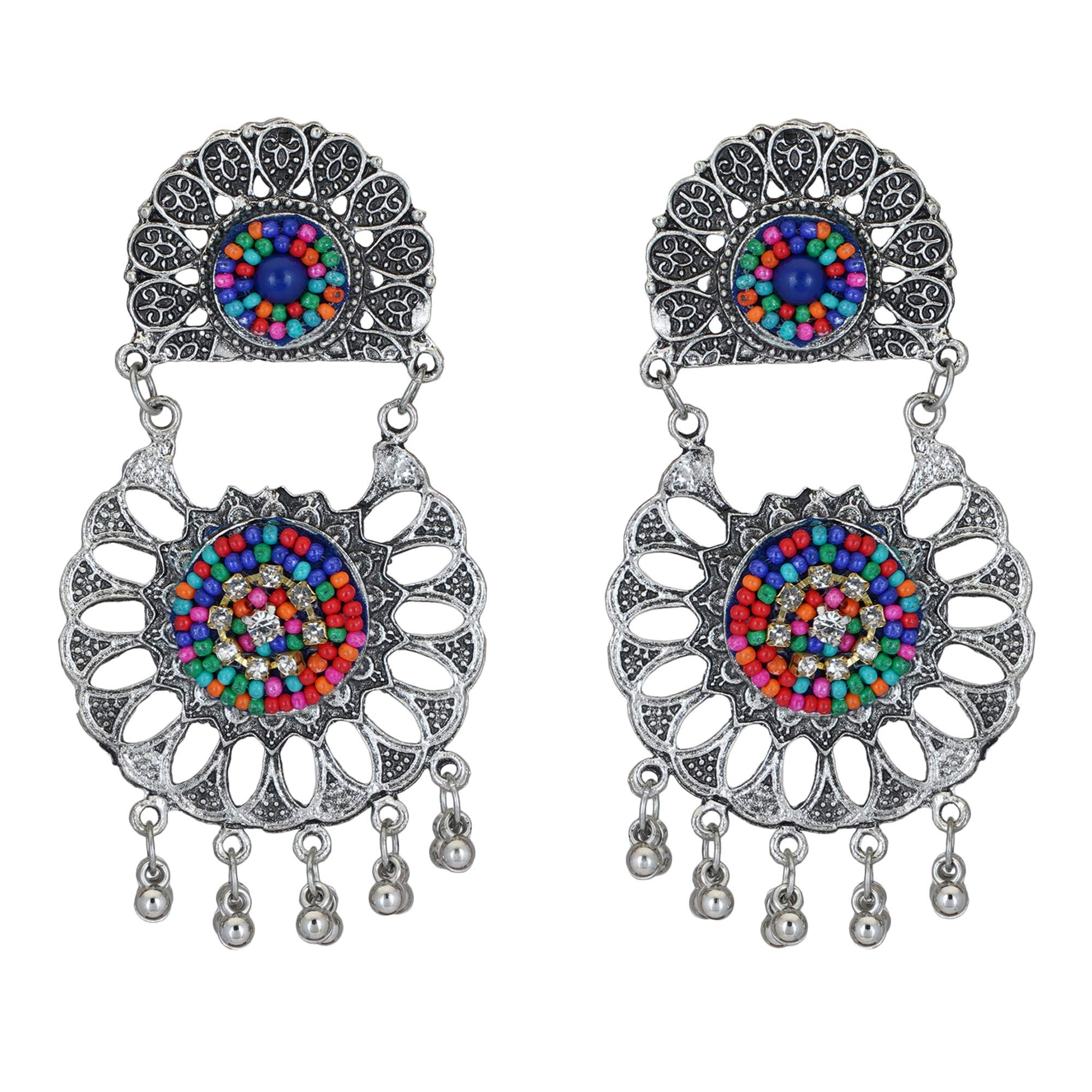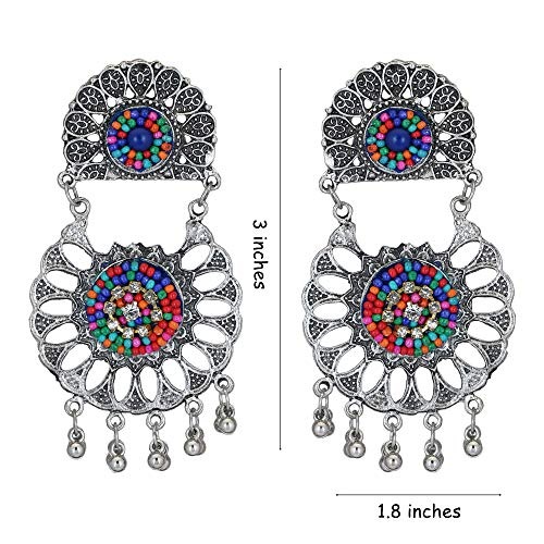 Shreyadzines Designer Traditional Oxidized Silver Afghani Style Dangle Multicolor Ghungroo Earrings for Women and Girls – Fast Shipping to USA & Canada