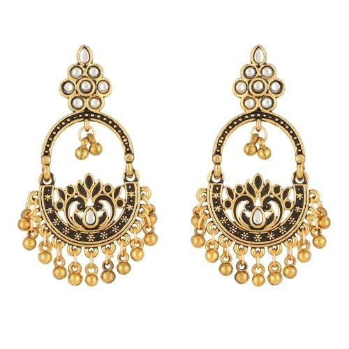 Shreyadzines Ethnic Asthetic Elegance : Oxidised Ghungroo Stone Jhumka Studs Earrings – Fast Shipping to USA & Canada