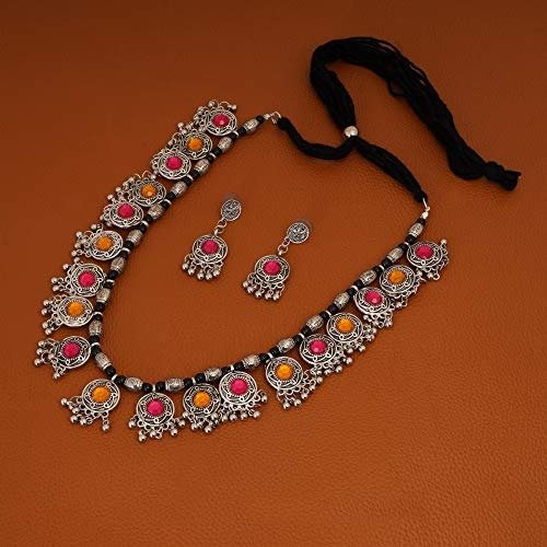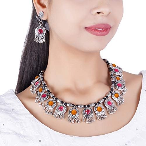 Shreyadzines Exclusive German Silver Oxidized Traditional Latest Fashion Choker Stone Necklace with Earrings Jewellery Set for Women and Girls – Fast Shipping to USA & Canada
