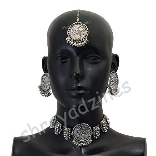 Shreyadzines Exclusive German Silver Oxidized Traditional Latest Fashion Peacock Choker Necklace with Earrings Jewellery Set for Women and Girls – Fast Shipping to USA & Canada