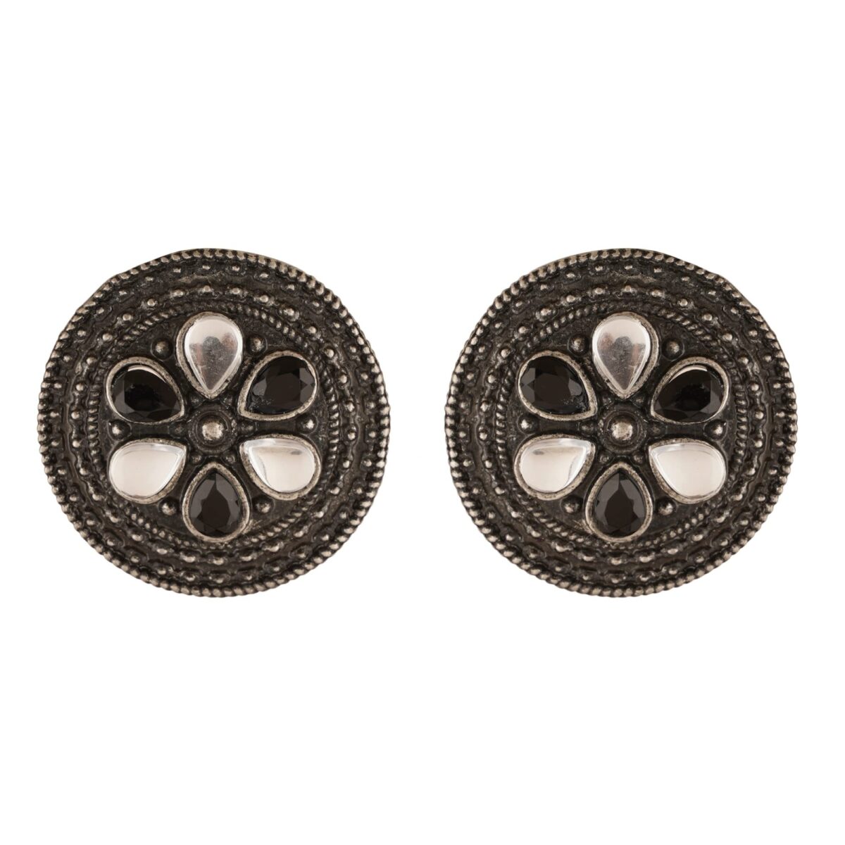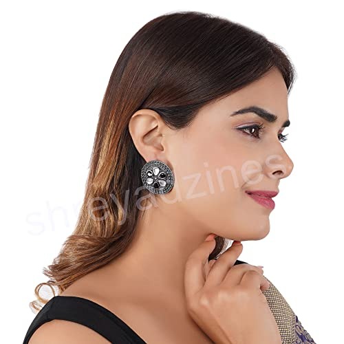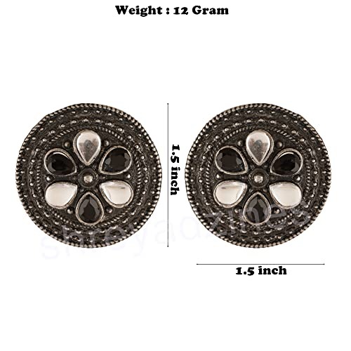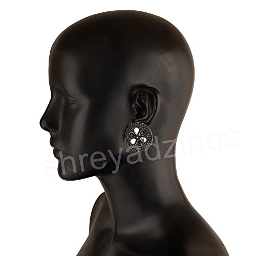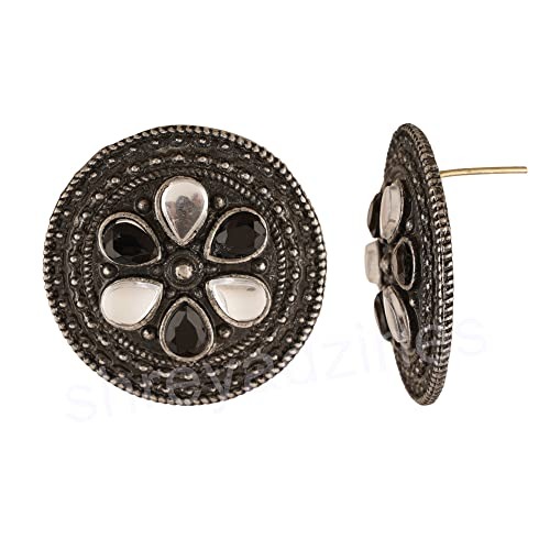 Shreyadzines Fashion Bollywood Jewellery Oxidized Black Polish Circular Designer Stone Studs Stud Indian Statement Earring For Women and Girls – Fast Shipping to USA & Canada