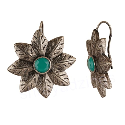 Shreyadzines Fashion Bollywood Jewellery Oxidized Silver Polish Floral Designer Stone Hook Studs Stud Indian Statement Earring For Women and Girls – Fast Shipping to USA & Canada