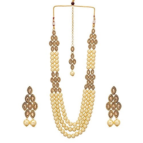 Shreyadzines Fashion Jewelry Gold Plated Kundan Fancy Necklace Traditional Jewellery Set with Earrings and Tikka for Women & Girls – Fast Shipping to USA & Canada