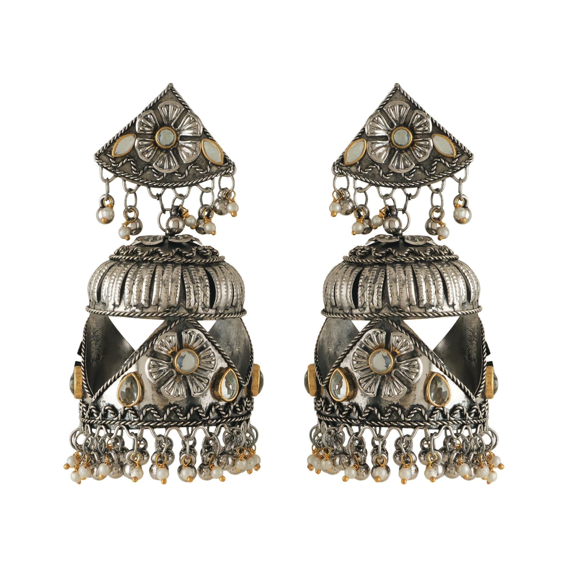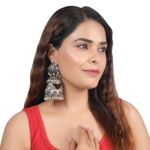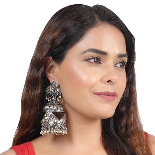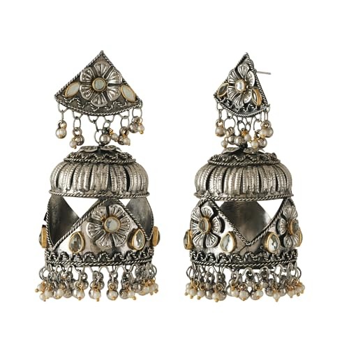 These earrings feature an intricate, authentic Afghani jhumki design, crafted from high-quality German silver. The material makes them lightweight and comfortable enough to wear for long hours. The photos show the actual earrings, with no special editing-please note that colors and brightness may vary slightly due to differences in cameras, lighting, or screen displays.