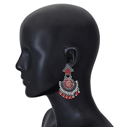 These are beautiful designer jhumka/jhumki dangle earrings, featuring sparkling CZ stones and an oxidized German silver finish.