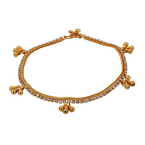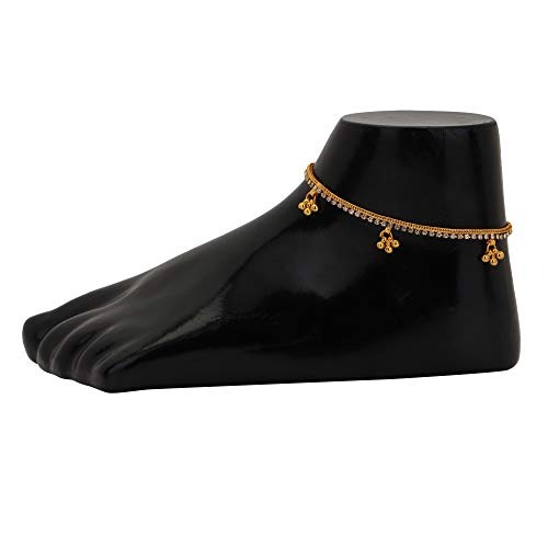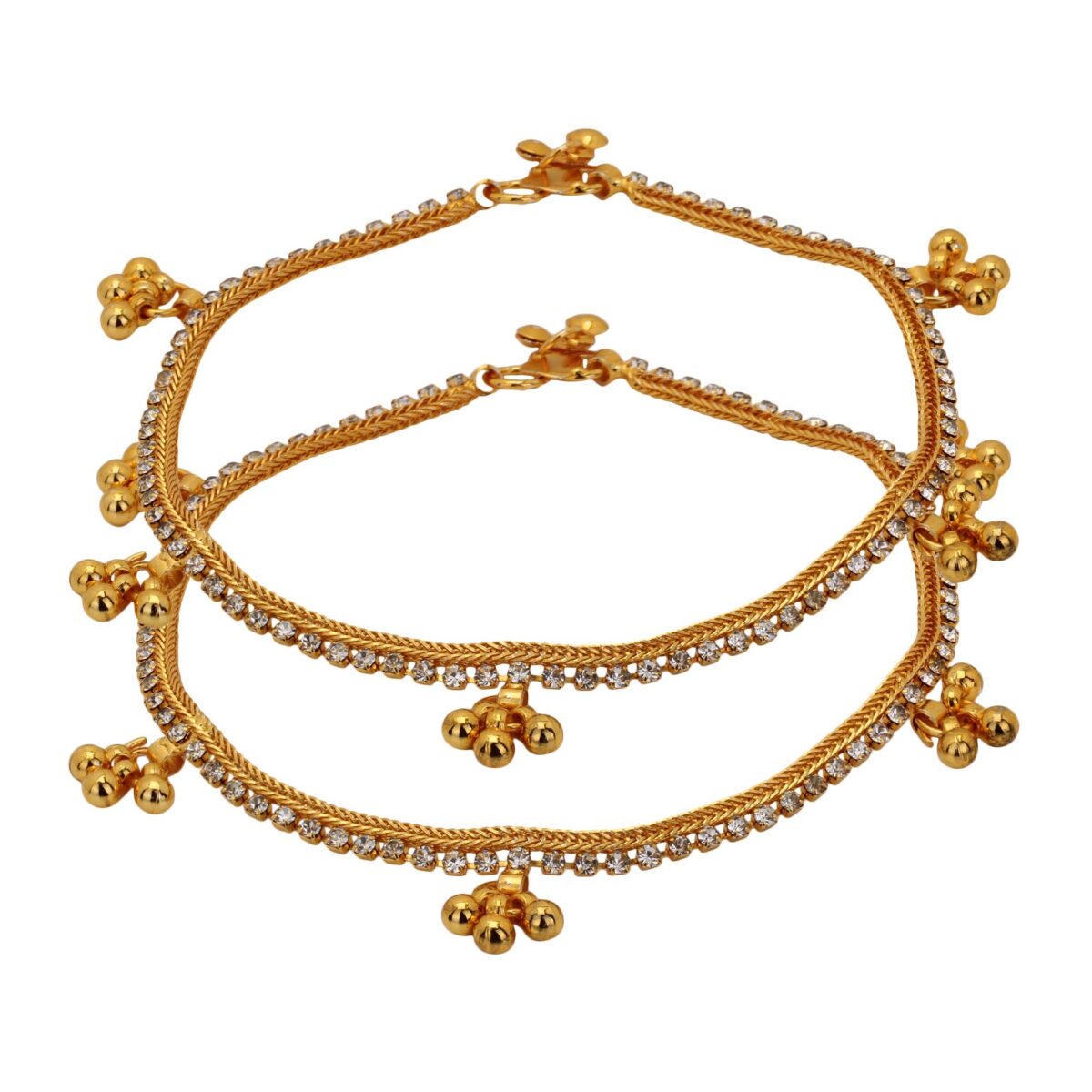 Gold-plated anklets featuring faux pearls and CZ stones in a unique self-design.