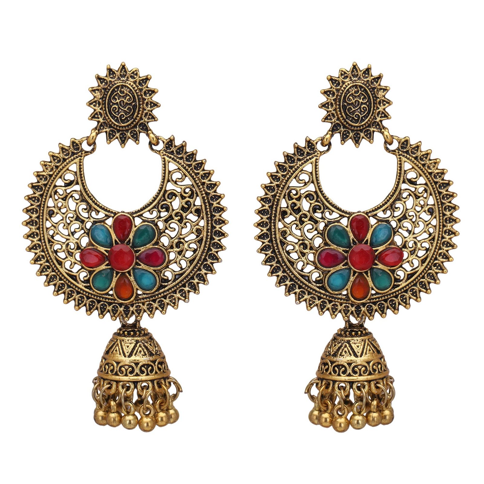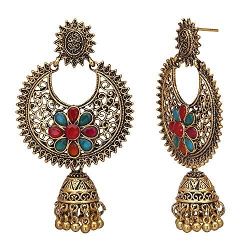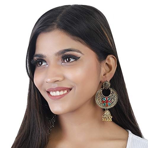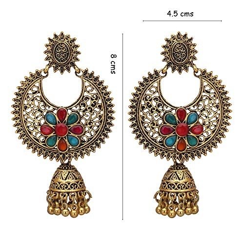 Shreyadzines Oxidised Polish Chandbali Jhumka Jhumki Stone Earrings for Women and Girls – Fast Shipping to USA & Canada