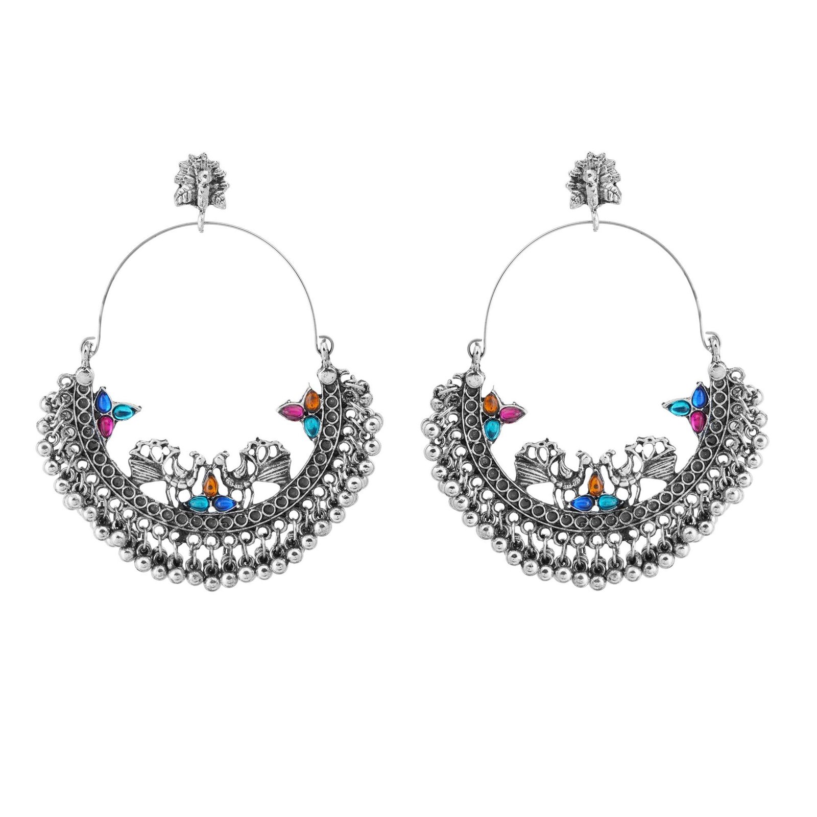 Shreyadzines Oxidized Chandbali Jhumka Jhumki Peacock Ethnic Statement Hoop Earrings Jewellery for Girls and Women – Fast Shipping to USA & Canada