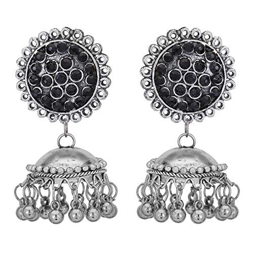 Shreyadzines Oxidized Silver Designer CZ Stone Jhumka Jhumki Earrings for Women and Girls – Fast Shipping to USA & Canada