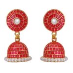 Traditional Wedding Bridal Gold-Polished Colored Jhumka Earrings