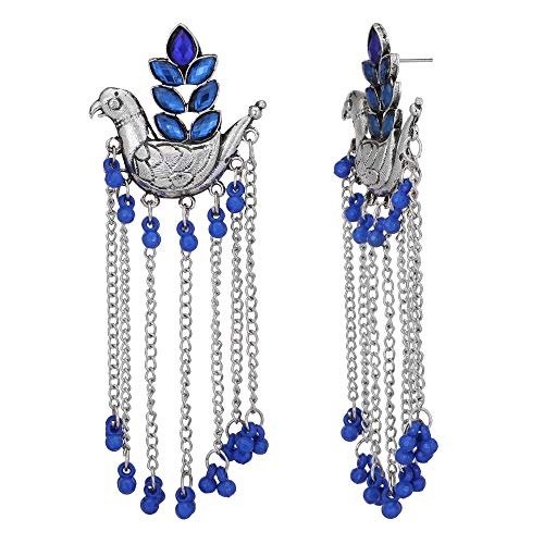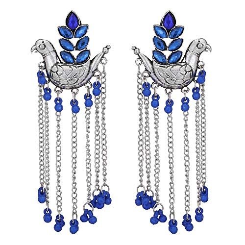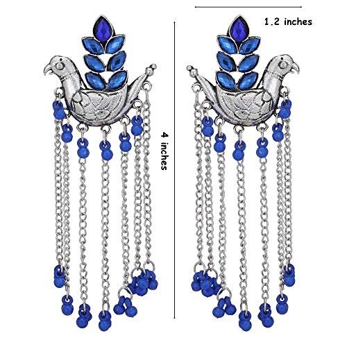 Traditional Oxidized Silver Bird Design Jhumka Dangle Long Earrings
