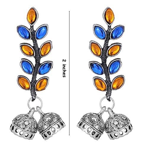 7 reviews for Shreyadzines Traditional Oxidized Silver Exclusive Floral Design CZ Stone Dangle Jhumka Jhumki Earrings for Women and Girls – Fast Shipping to USA & Canada