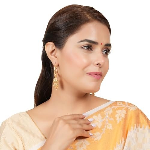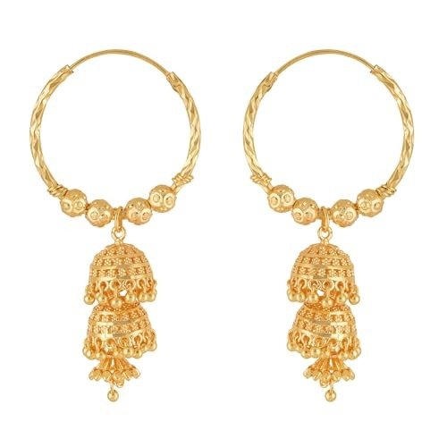 - Design: Our Gold-Plated Bali Jhumka earrings showcase a stunning, intricate design inspired by the rich traditions of South Indian jewelry. With delicate filigree work and exquisite detailing, these earrings exude timeless elegance and add a touch of luxury to any outfit.