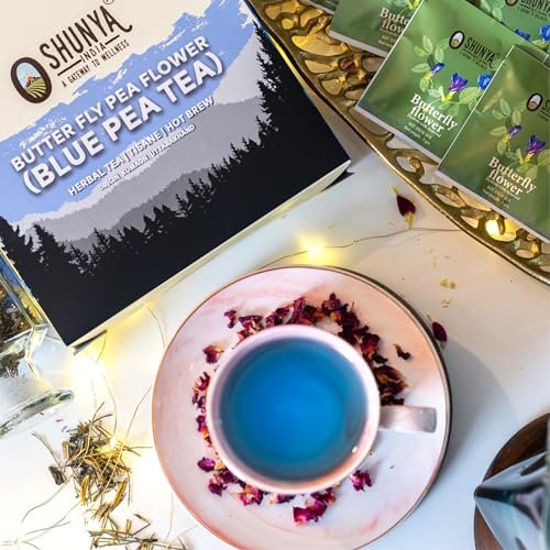 Shunya India Butterfly Pea/Blue Pea Tea Tisane (20 Tea Bags, 3g Each) – Herbal Infusion Tea Tisane Natural Antioxidant, Support Immunity, Caffeine Free – Fast Shipping to USA & Canada