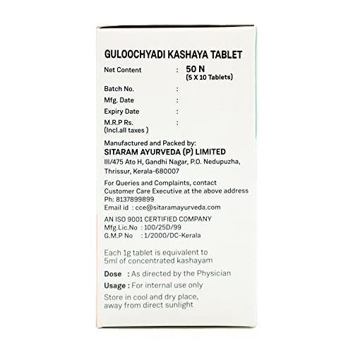 Sitaram Ayurveda Guluchyadi Kashayam Tablets | Guluchyadi Kashayam In Tablet Form (50 NOS) – Fast Shipping to USA & Canada