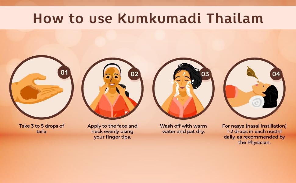 - Kumkumadi tailam is a luxurious, golden-hued oil known for its rich, nourishing qualities and soothing aroma. It?s an excellent choice for facial massage, helping to calm the senses while deeply caring for your skin. With regular use, Kumkumadi tailam can boost blood circulation in the face and allow its restorative benefits to penetrate deeply, leaving your skin healthier and more radiant.