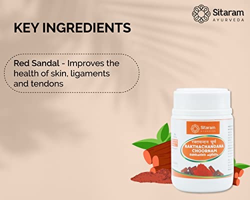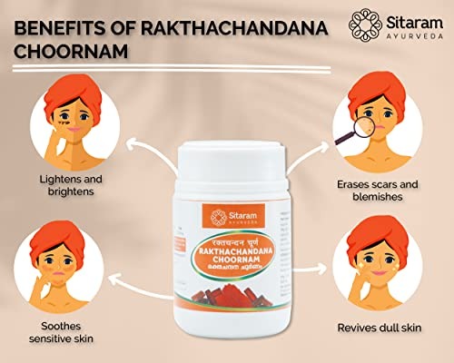 - Rakthachandana choorna helps enhance your natural complexion, giving your skin a healthy, radiant glow. It gently exfoliates and helps reduce tanning, leaving your skin looking brighter and more refreshed.