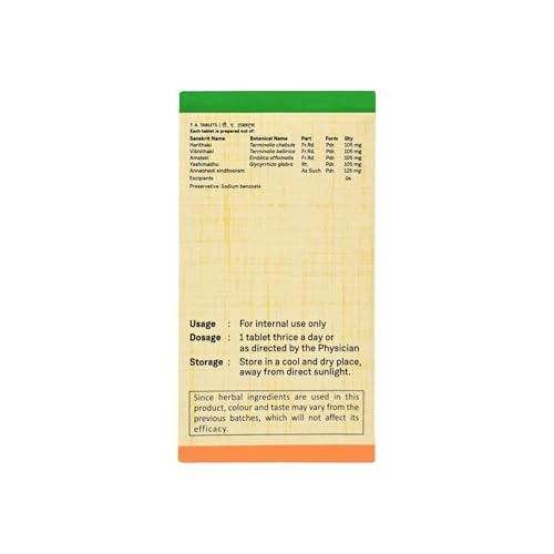 TA Tablet is an Ayurvedic supplement made from a combination of traditional herbs and minerals, designed to support overall health and well-being. Its key ingredients-Triphala, Kaseesa Bhasma, and Yashtimadhu-have long been used in Ayurveda for their various health benefits. People often take TA Tablet to help improve digestion, boost iron levels, and address concerns related to low hemoglobin and general vitality. However, since everyone?s health needs are different, it?s important to talk to a healthcare professional before starting this supplement.