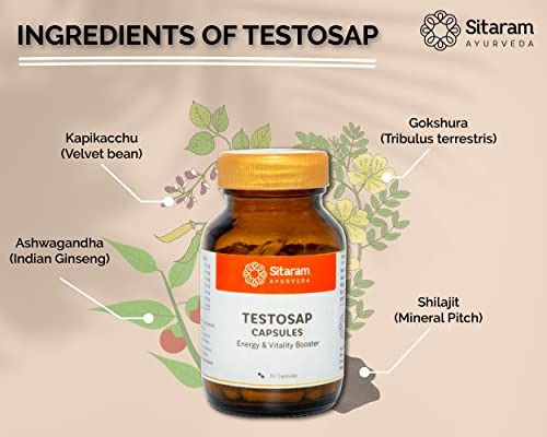 Sitaram Ayurveda Testosap Capsule 60 Nos | Kerala Ayurvedic Natural Testosterone Booster for Men with Aswagandha, Musli, Gokshura, Shilajit & Kapikacchu – Fast Shipping to USA & Canada