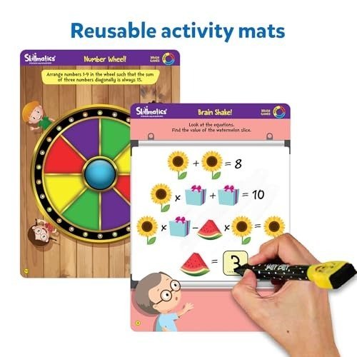 Skillmatics Brain Games Activity Mats – Logic and Problem Solving Game for Kids, Reusable Write & Wipe Activity Set with Marker, Educational Gift for Ages 6, 7, 8, 9 & Up – Fast Shipping to USA & Canada