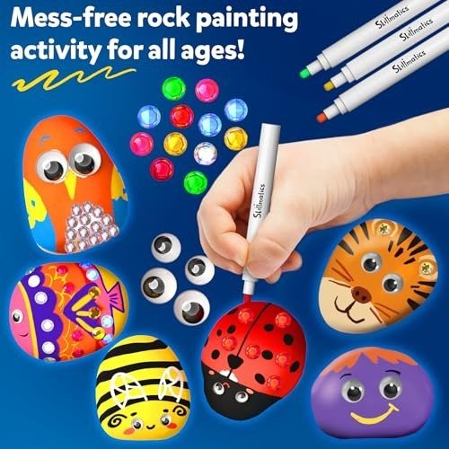 Skillmatics Rock Painting Kit – Mess-Free Art & Craft Activity for Girls & Boys, Craft Kits & Supplies, DIY Creative Activity, Christmas Gifts for Kids Ages 4, 5, 6, 7, 8, 9, 10, 11,12 – Fast Shipping to USA & Canada