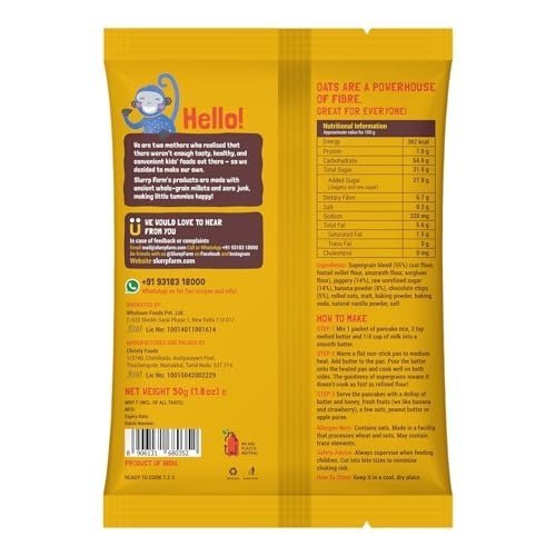 - 50g sachets of millet pancakes available in blueberry, classic, choco-chip, and chocolate flavors, along with dosa mixes in spinach and beetroot varieties.
