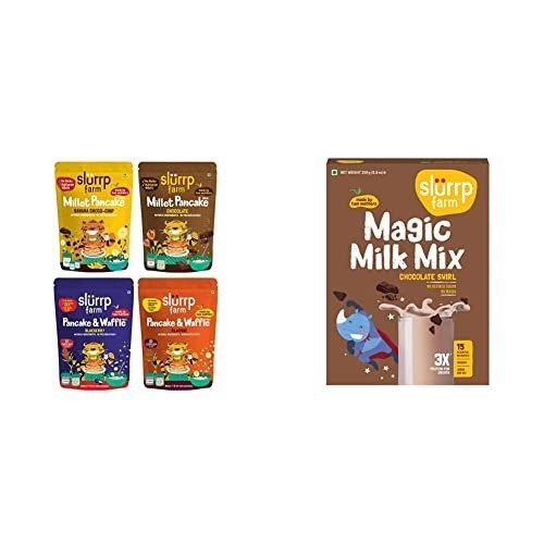 Slurrp Farm Healthy Pancake Lovers Combo 150Gx4 & Slurrp Farm High Protein Chocolate Swirl Milk Mix 250g – Fast Shipping to USA & Canada