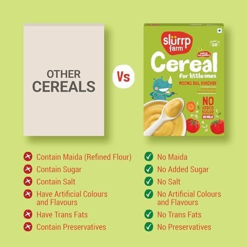• A nutritious cereal for children made with moong dal, oats, rice, jowar, and real vegetables.