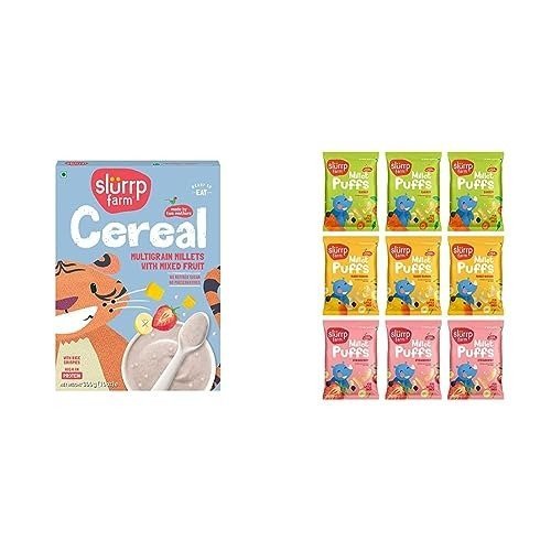 Slurrp Farm Multigrain Cereal 300g + Teething Puffs Pack of 9 | Fast Shipping USA & Canada