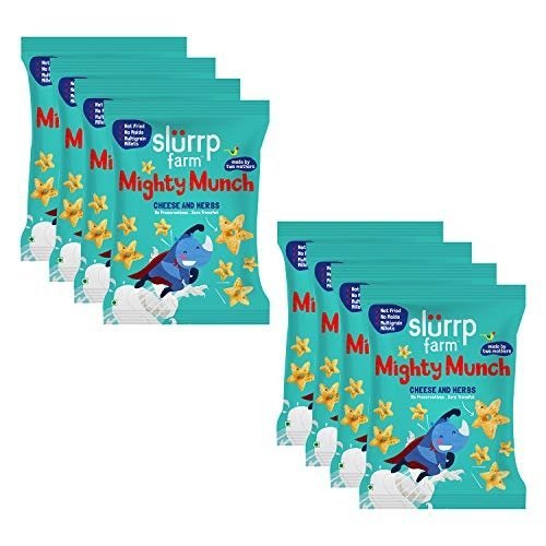 **Slurrp Farm Healthy Snacks for Kids | Mighty Puff Cheese & Herbs | Baked, No Maida | Ideal for School Lunchboxes and On-the-Go | 8 Packs of 20g Each**