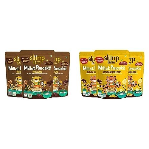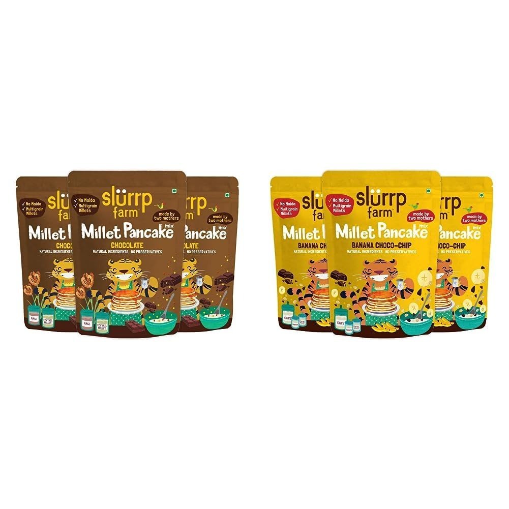 Slurrp Farm No Maida Pancake Mix Chocolate 3x150g & Slurrp Farm No Maida Pancake Mix Banana Chocochip 3x150g – Fast Shipping to USA & Canada