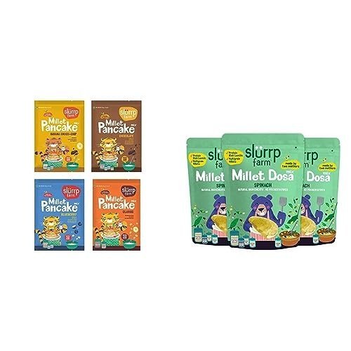 Slurrp Farm No Maida Pancake Trial Pack Combo 4x50g & Slurrp Farm High Protein Millet Dosa Instant Mix Spinach 150g Pack of 3 – Fast Shipping to USA & Canada