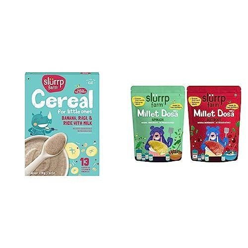 Slurrp Farm Organic No Sugar Baby Cereal Ragi Rice and Banana with Milk 200g & Millet Dosa Instant Mix Spinach and Beetroot 150g – Fast Shipping to USA & Canada