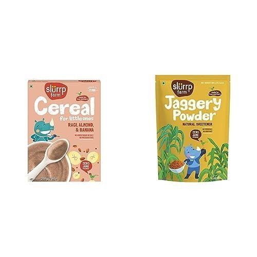 Slurrp Farm Ragi Almond Banana Cereal 200g + Natural Jaggery 300g | Fast Shipping USA & Canada