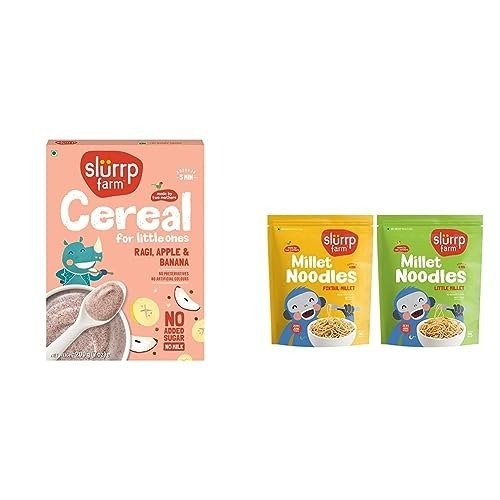 Slurrp Farm Ragi & Apple Cereal with No Sugar 200g & Slurrp Farm No Maida Millet Noodles 2x192g – Fast Shipping to USA & Canada