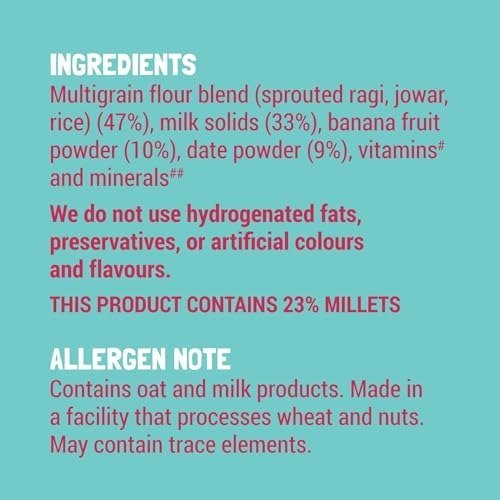 This is a vegetarian product, enriched with organic super grain ragi. Ragi contains ten times more calcium than wheat or rice, making it excellent for developing strong bones. It is also fortified with iron, vitamins, and minerals.