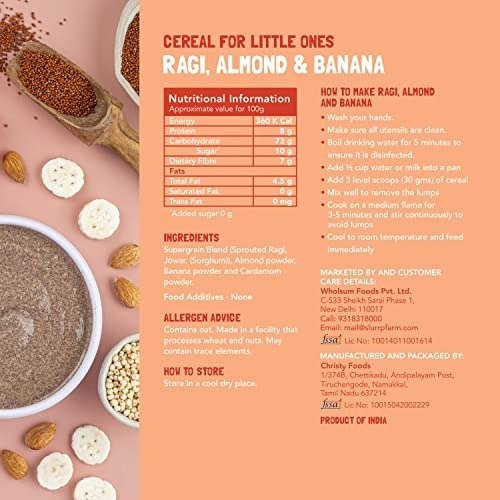 - Includes 50g each of Sprouted Ragi, Ragi Almond Banana Cereal, Strawberry Cereal, and Sathu Maavu Porridge.