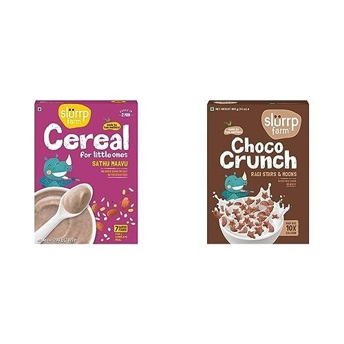 Slurrp Farm Sathu Maavu Multigrain Health Mix Ragi Dals & Almonds 200g & Slurrp Farm Choco Crunch Chocolate Cereal 400g – Fast Shipping to USA & Canada