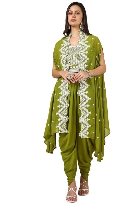 Soch Women’s Green Georgette Blend Embroidered Coordinated Set Featuring Cutdana Details