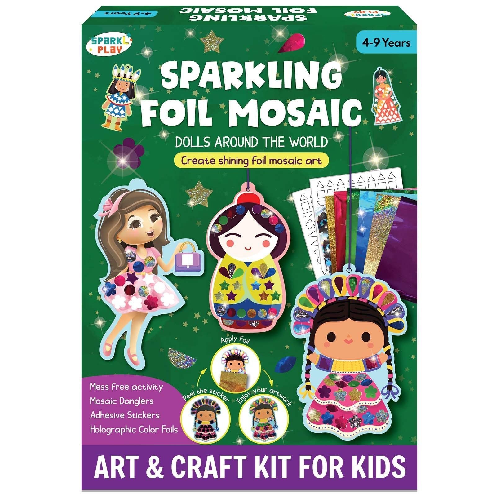 - Foil Art & Craft Kit for Girls Ages 4-9: The SparkLPlay DIY foil coloring set allows children to design sparkling, doll-inspired mosaic artwork. Ideal as a birthday present for girls between 4 and 9 years old, it offers enjoyable, mess-free creative activities.