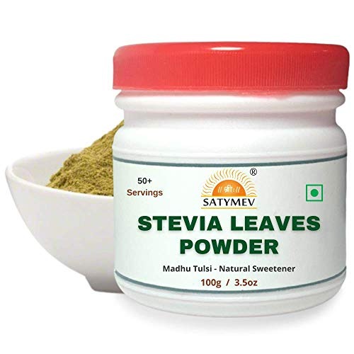 SriSatymev Stevia Leaves Powder 100g Unprocessed – Madhu Tulsi | Natural Sweetener | Jar Pack – Fast Shipping to USA & Canada