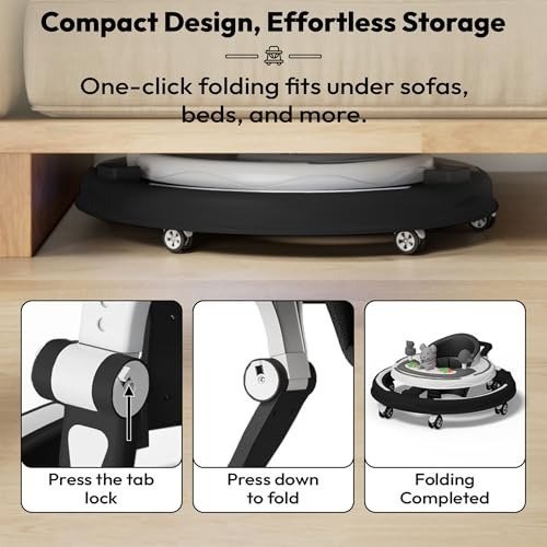 - 360? SWIVELING CIRCULAR DESIGN: The walker features six 2-inch oversized universal smart wheels, allowing your baby to effortlessly maneuver in any direction without getting stuck.