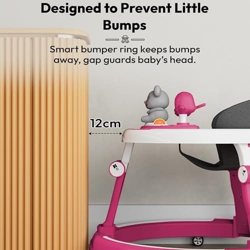 • 360? SWIVELING CIRCULAR DESIGN: The walker features six 2-inch oversized universal smart wheels, allowing your baby to effortlessly glide in any direction without getting stuck.