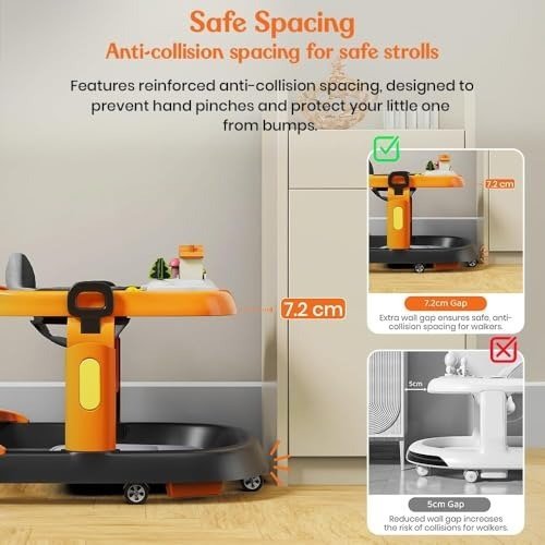 - 360? SWIVELING WHEELS: This baby walker is equipped with front wheels that rotate a full 360?, ensuring seamless and effortless maneuverability. The swiveling design offers enhanced control and agility, allowing your child to navigate their surroundings with ease and safety.
