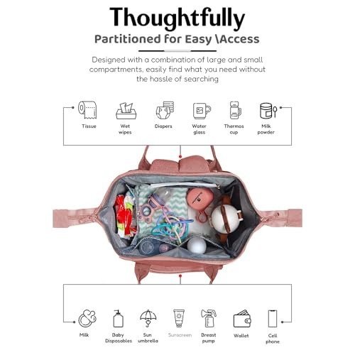 StarAndDaisy Baby Bag for Mother Travel/Maternity Bag with Multi Compartments, Insulated Bottle Pockets, Waterproof, 30L Capacity ? Pink Grey – Fast Shipping to USA & Canada